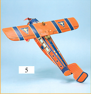 Flugzeug, Blech lithogr., deutsch, Vorkrieg, 40 cm, Uhrwerkantrieb intakt, mit Beleuchtung, kl. hinteres Rad fehlt, sonst guter Zust.