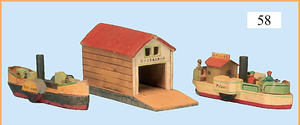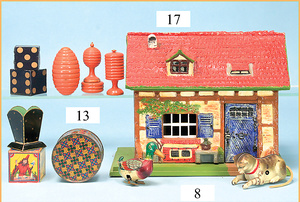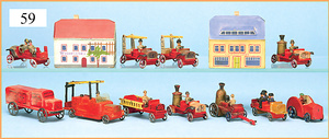 ERZGEBIRGE, Konv. Miniaturen, 10 Teile Feuerwehrfahrzeuge, mit Zinnrädern, 1 LKW mit Zinnrädern, 2 Gebäudeteile, Konditorei u. Weinstuben, meist guter Zust.