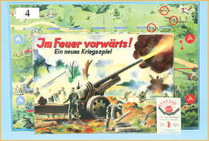 Brettspiel, Im Feuer vorwärts, neues Kriegsspiel, Orig.-Kart., mit Spielanleitung u. Zubehör, Orig.-Kart., bunt lithogr. Deckbild, 2. Weltkrieg