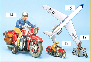 TIPP & CO., Satteltaschen-Motorrad, TCO 598, Blech lithogr., Friktionsantrieb, 29 cm, Frontscheibe ergänzt, leicht bespielt, guter Zust.