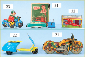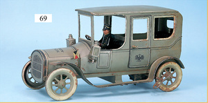 kl. Limousine, Blech lithogr., 9,5 cm, Kurbelantrieb, deutsch, Auto ferngesteuert, 54/1, im Orig.-Kart., sehr guter Zust., Kart. Verschlissen