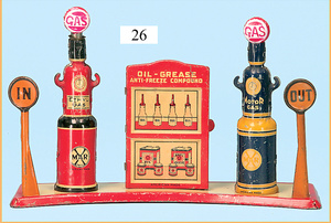 SCHUCO, Phänomenal 5503, Mercedes 190 SL, 22 cm, bespielt, Frontscheibe stark beschädigt, 1 Rad ergänzt, dazu 1 Zapfsäule ARAL