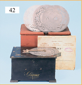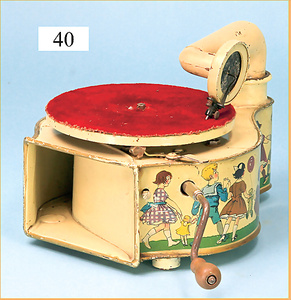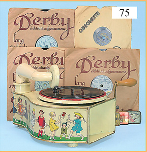Kinder-Grammophon, Blech lithogr., mit Kinderspielszene, 14 Schellackplatten, schöner Klang, schöner Zust.