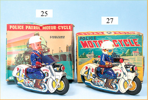 Polizei-Motorrad, Police Patrol Motorcycle, Japan, Blech lithogr., Friktionsantrieb, 23,5 cm, sehr guter Zust., im Orig.-Kart.