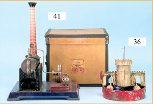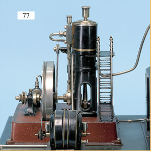 MÄRKLIN, stehende Modell-Dampfmaschine, ca. 1911, Kesseldurchm. 11,5 cm, Schwungrad 12, Wasserstandsglas, Kraftregler, Manometer, Orig.-Brenner, Grundplatte 30,5 x 29 cm, 1 kl. Druckstelle am Kessel, sehr schöner Orig.-Zust.