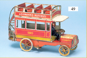 Autobus 590, Blech, lithogr., Spiralfederwerk, mit Fahrerfigur, 20 cm, bespielt, altersbedingte Lackfehler