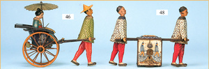 LEHMANN, Kadi, 2 Chinesen tragen 1 Teekiste, Seilzugantrieb, Blech lithogr., seitlich Aufschrift: Peking Nanking Kanton, Zöpfe fehlen, bespielt, altersbedingte Lackfehler
