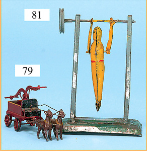 LEHMANN, Masujama 773, Geisha mit Wagen, Blech lithogr., mit Blechschirm u. Fächer, sehr guter Zust., 17 cm