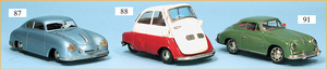 JNF, Porsche 356, Prototyp, Blech, 20,5 cm, Uhrwerkantrieb, elektr. beleuchtete Scheinwerfer, Batteriekasten innen etwas angerostet, leichte Druckstelle am Dach, bespielt, guter Zust.