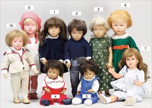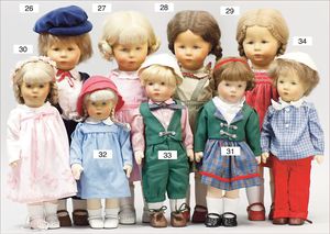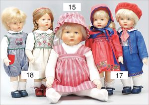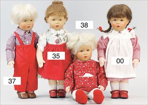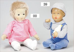 KÄTHE KRUSE Puppenpaar, Wiederauflage der Puppe Nr. 7, Rolf und Erika, zum 110. Geburtstag von Käthe Kruse, 35 cm, beide unbespielt, im Orig.-Kart.