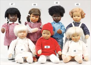 KÄTHE KRUSE Mädchen, Kunststoffkopf, 48 cm, Stoffkörper, stellenweise ausgeb., Gesicht überstrichen