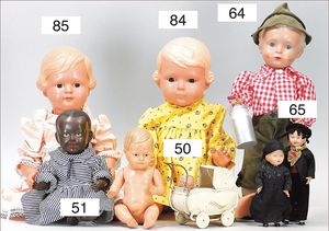 SCHILDKRÖT Kaiserbaby, farbig, Celluloid, SoR, 30 cm, Kurbelkopf, gemalte Augen, Sitzbabykörper mit unterschiedlicher Handhaltung, guter Zust., selten