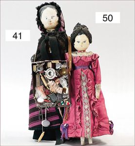 Masse-Brustblattkopf-Puppe, braune fest eingesetzte Glasaugen, geschl. Mund, Rissbildung am Brustblatt, Stoff-Körper, Masse-Unterarme und -Unterschenkel, Finger etw. bestoßen, 46 cm, als Nonne gekleidet