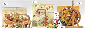 1 Gyroscope, mit Anleitung, im Original-Karton, dazu 1 Legespiel "Quälgeist", 1 altes Domino-Spiel im Original-Karton