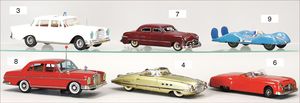 SCHUCO Studio, Konv. 5-teilig, Mercedes Rennwagen, 14 cm, Vorkrieg, farbl. überarbeitet, Schuco Kommando 2000, Uhrwerk intakt, farbl. überarbeitet, Schuco Examico 2002 Replika, guter Zust., Schuco 1010, Wendeauto Replika, sehr guter Zust., Schuco Mikroracer, 1047 Porsche Replika, sehr guter Zust.