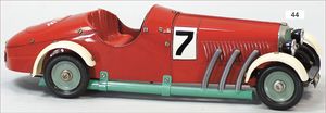 MÄRKLIN Baukastenauto, Rennwagen, 37 cm, schwere Blechausführung, Kotflügel und Nummernschild farbl. überarbeitet, bespielt gut, Uhrwerk intakt