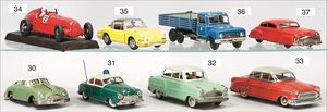 Konv. 4-teilig, Mercedes 300SL, Rennwagen, italienische Limousine, Friktionsantrieb, Made in Italy, Blech, 11 cm, dazu Wiking VW Bus und Käfer, demontierbar, Alter?, alles guter Zust.