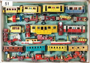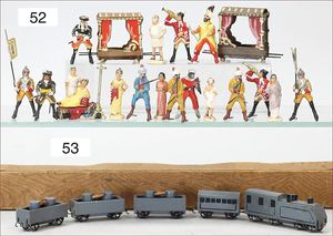 ERZGEBIRGE Musterkart., Feuerwehrfahrzeuge, Straßenbahn, Schiffe mit Metallräder, Züge, völlig unbespielt, im Orig.-Kart., extrem außergew.