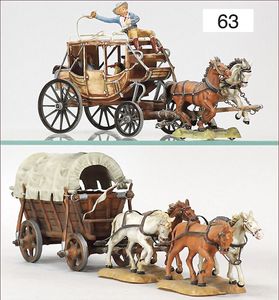 ELASTOLIN Kunststoff Planewagen, mit 4 Zugpferden, 44 cm, dazu 1 Postkutsche, Kunststoff, mit 2 Zugpferden, bespielt, bis auf kl. Stellen gut