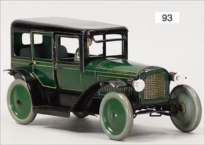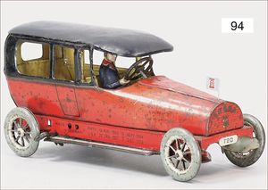 LEHMANN 720, Limousine, Blech lithogr., 25 cm, Spiralfederwerk intakt, mit Fahrerfigur, bespielt, Lackfehler