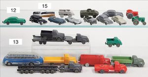 WIKING 11 Teile, unverglast sowie frühe verglaste Teile, PKW und Nutzfahrzeuge, teils gut, teils stärker bespielt, mit kleineren Fehlern, ein Panzerspähwagen Rocco