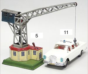 GAMA Mercedes, 375, Heckflosse, Polizei, Batterieantrieb, 34 cm, Stern fehlt, leicht bespielt, guter Zust.