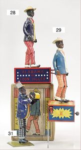LEHMANN Oh-My-Alabama Coon Jigger Stepptänzer, Blech, lithogr., Figur teils handlackiert, Uhrwerk intakt, guter Zust. mit nur geringen Spielspuren, im Orig.-Kart., mit Anleitung