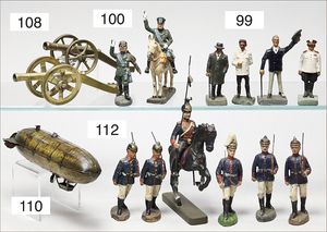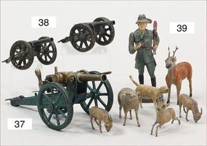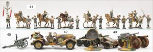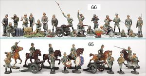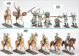 Konv. Vorkrieg, Masse, 2. Welkrieg, 6 Reiter, untersch. Hersteller, 7 Musiker, Elastolin und andere, meist Zust. 3, einige beschädigt, dazu 2 Kanonen