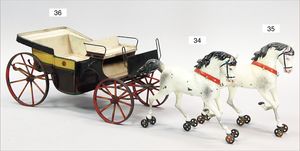 MÄRKLIN Uralt, Pferd, Blech, handlackiert, Gussspeichenräder, Höhe 18,5 cm, Länge 23 cm, für frühe Märklin-Kutsche, schöner Orig.-Zust., selten