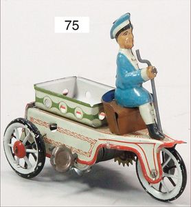 Dienstmann mit Wagen, Blech, lithogr., deutsch, Vorkrieg, guter Zust., Spiralfederwerk intakt, Höhe 14,5 cm