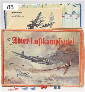 Spiel, Adler Luftkampfspiel, Brettspiel mit Anleitung, Orig.-Karton, mit lith. Deckbild, Karton stärker verschlissen, sonst gut