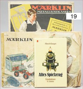 MÄRKLIN 2 x Verkaufskatalog für Metallbaukästen, 1 x Nr. 14929, 1 x Nr. 71A, dazu 1 Fachbuch, "Altes Spielzeug, Eisenbahnen u. Zubehör" von Albrecht Bangert