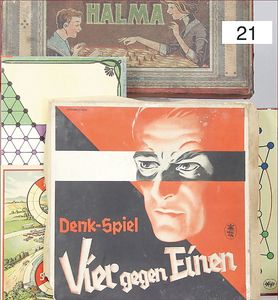 3 alte Spiele, 1 x Halma, Denkspiel "Vier gegen Einen" von Goebel, auf Vollständigkeit nicht überprüft, 1 x Nürburgring, Autorennspiel, Kart.-Boden fehlt