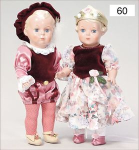 MINERVA Celluloidpuppe, Kopf gem. Germany 5, Körper gem. 37, blaue fest eingesetzte Glasaugen, schön ausmodellierte Frisur