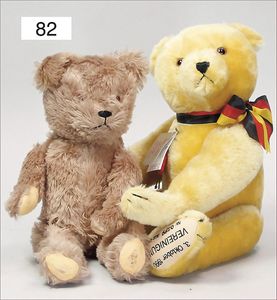 HERMANN 2 x Teddy, 1 x Musikspielbär, karamellfarben, bespielt, Uhrwerk intakt, 37 cm, 1 x Orig.-Teddy, limitierte Edition, zum 3. Oktober 1990, 40 cm