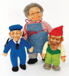 Konv. 3 Figuren, 1x Lucky kompl., 17 cm, 2 Figuren, 1x Seemann, Stoffkörper 18 cm, Macky, Vinylkopf, 25 cm