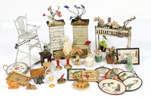 schönes Konv. Puppenstuben-Puppen, teils Brustblatt, mit Stoffkörper, oder Ganzbiskuit, zwischen 5 und 15 cm, bitte besichtigen