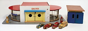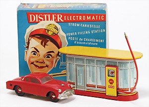 Tankstelle mit Fahrzeug, Blech u. Kunststoffteile, Fahrzeug 14 cm, neuwertig, Orig.-Kart., mit Anleitung, technisch nicht geprüft