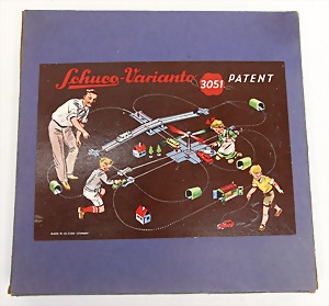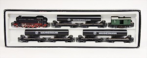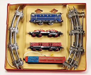 H.B.N. Made in Germany, Zugpackung mit Elektrolok und 2 Wagons, Gleismaterial und Akku, Orig- Kart.