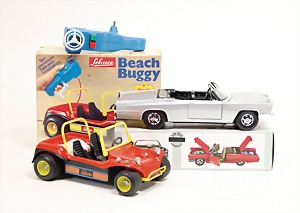 Beach Buggy, 351121, neu mit Federmotor, ohne Batterien, mechanisches Federwerk, Fernsteuerung, Kunststoff, 22,5 cm, dazu 1 Cadilac, 5505, neuere Produktion, sehr guter Zust., im Orig.-Kart.