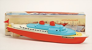 MS Kreuzfahrtschiff, Blech u. Kunststoffteile, 43 cm, Uhrwerk intakt, guter Zust., im Orig.-Kart.