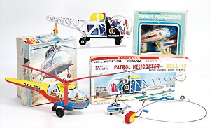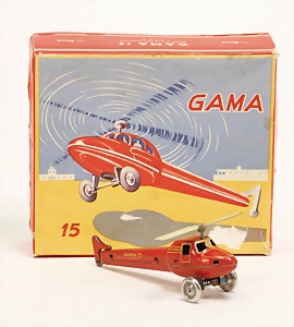 Hubschrauber, Nr. 15, Blech lithogr., 14 cm, US-Zone, Uhrwerk intakt, im Orig.-Kart., guter Zust.