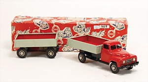 2 Teile LKW, Gama, 298, Kipplaster, MS Pannomac Containerwagen, Blech- u. Kunststoffteile, 1420, neuwertig, Orig.-Kart.