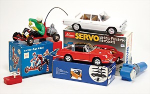 Servo Elektro Fernlenk Mercedes, 5311, Porsche Taga 911 S, Hucki Go Cart, 4/1, Kunststoff, alles neuwertig, Orig.-Kart.