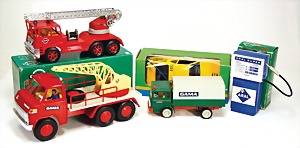 Konv. Feuerwehrauto, Blech- u. Kunststoffteile, 2638, Gama Kranwagen, Kunststoff, 5701, Gama, Zapfsäule, Aral, Kunststoff, Gama BMW, Sportwagen, M1, 3801, alles neuwertig, Orig.-Kart., Gama Kranwagen, 2428, neuwertig, Orig.-Kart.