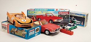 Carrera Structo, 3 Teile, Mercedes, 350 SL, Tastomat Servolenkung, 1 u. 2 Gang, Porsche 908, Elektroantrieb, BMW 3,0 CSL, Polizei, mit Funksteuerung, neuwertig Orig.-Kart., Kart. etwas verschlissen