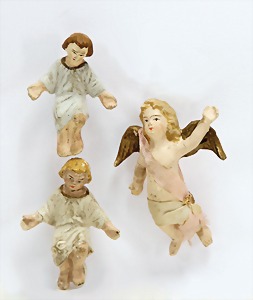 schönes Konv. Oblatenbilder, Engelsköpfe, Kinderköpfe, Weihnachtsmannköpfe, Kinderszenen, Weihnachtsmänner, Blumen, klein- u. großformatig, ca. 50 Teile