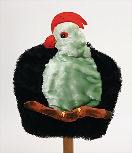 Kaffeewärmer, Mohair, sowie grüner Seidenplüsch, Filz, Samt, Papagei, wohl 20er Jahre, aufwendig gearbeitet, 26 cm
