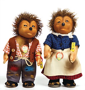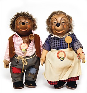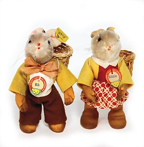 Micki u. Mecki, kompl., Schilder mit rückseitig Hörzu-Aufdruck, Nr. 728B, Nr. 728M, 27 cm, guter Zust.