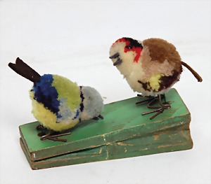 Konv., 8 Teile, Pieps, kompl., Nr. 4308.05, 3 Wollminiaturen, Knopf u. Fahne, kl. Bock, mit Schild u. Knopf, ohne Fahne, Schwein, mit Knopf u. Fahne, Ziege, ohne Knopf u. Schild, 1 Esel, Anker, kl. Seehund